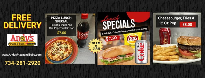 We Have Offered Free Delivery Since 1984. Andy's Pizza And Subs Has Best Deals Downriver!!!!